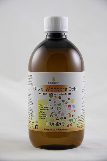 Condizioni particolari d'impiego per gli oli anche alimentari: Indicazioni l'olio di mandorle dolci è un integratore alimentare ottenuto per spremitura a freddo delle mandorle dolci, 100% naturale. Ottimo olio vegetale da utilizzare per condire le pietanze a cui dona il suo caratteristico aroma, è anche riconosciuto per essere un ottimo aiuto nel favorire il fisiologico transito intestinale. L'olio di mandorle dolci è in assoluto l'olio vegetale più usato in cosmesi naturale, soprattutto per le sue proprietà emollienti e nutritive. Amygdalus, come l'albicocco o il pesco). Usi alimentari dell'olio di mandorle dolci. L'olio alimentare di mandorle dolci è ricco di acido oleico e linoleico, vitamine (in particolare del gruppo b ed e) e sali minerali. Le ricette di bellezza e gli usi di fondo l'olio può essere usato come base per sciogliere oli essenziali o da solo. Posologia si consigliano 5 ml, Olio di mandorle dolci puro al 100%, per uso sia alimentare, sia cosmetico. Uno o due cucchiai al giorno, infatti, sono utili per purificare la vescica, facilitare le funzioni intestinali e alleviare i fastidi da stomaco sensibile o irritato. Olio di mandorle dolci pressate a freddo, vitamina e. Per uso cosmetico, porre una giusta quantità di prodotto sulle mani e massaggiare dolcemente il corpo fino al completo.